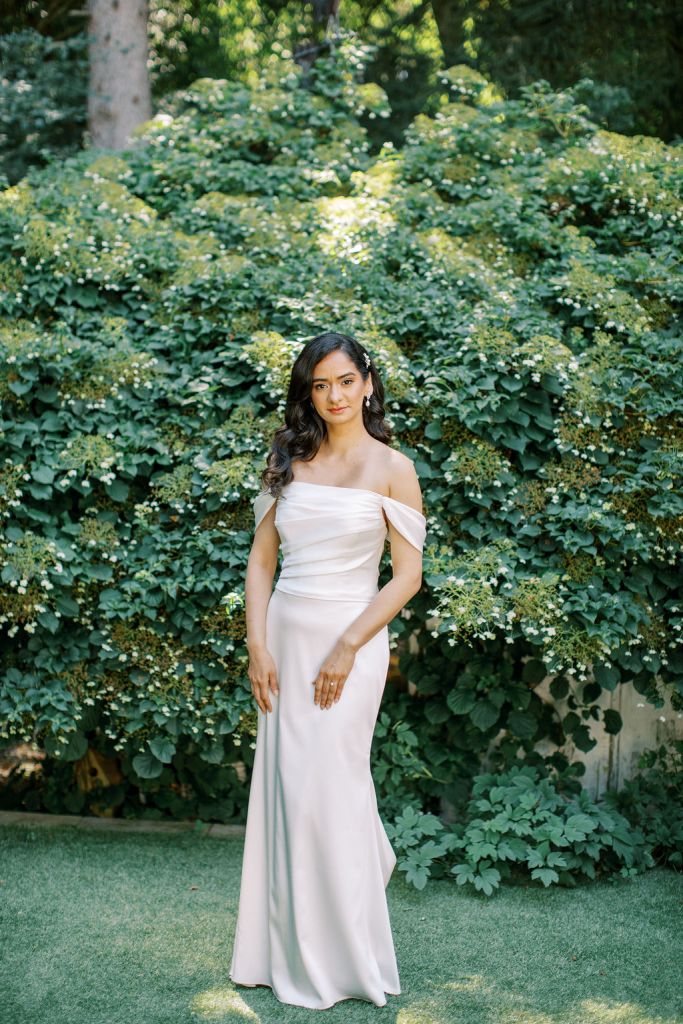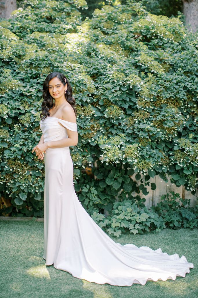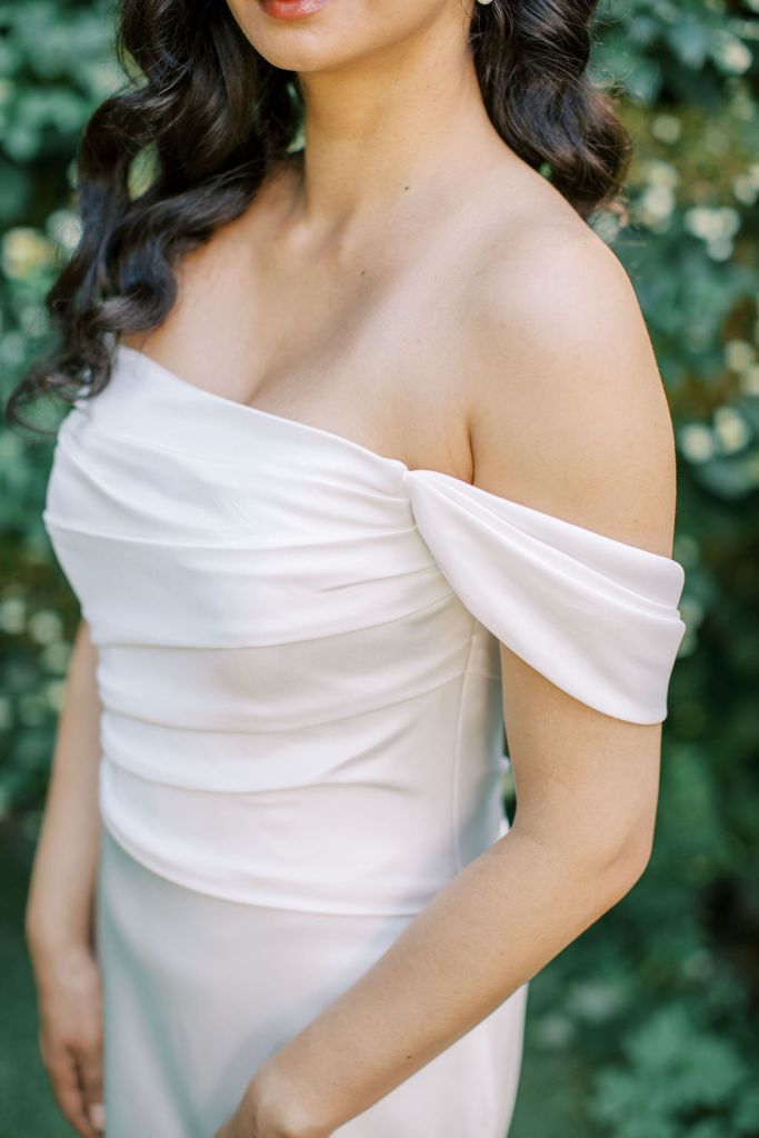 A vision of refined romance, the Cameron is a classic gown crafted in luxurious Ganavi stretch Mikado, sculpting the silhouette with understated grace. The off-the-shoulder scoop neckline evokes timeless elegance, while delicate ruched cap sleeves add a touch of femininity.